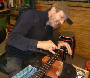 Het tegenwoordig veel toegepaste ‘inpersen’ van de frets, dat heeft beslist niet mijn voorkeur,